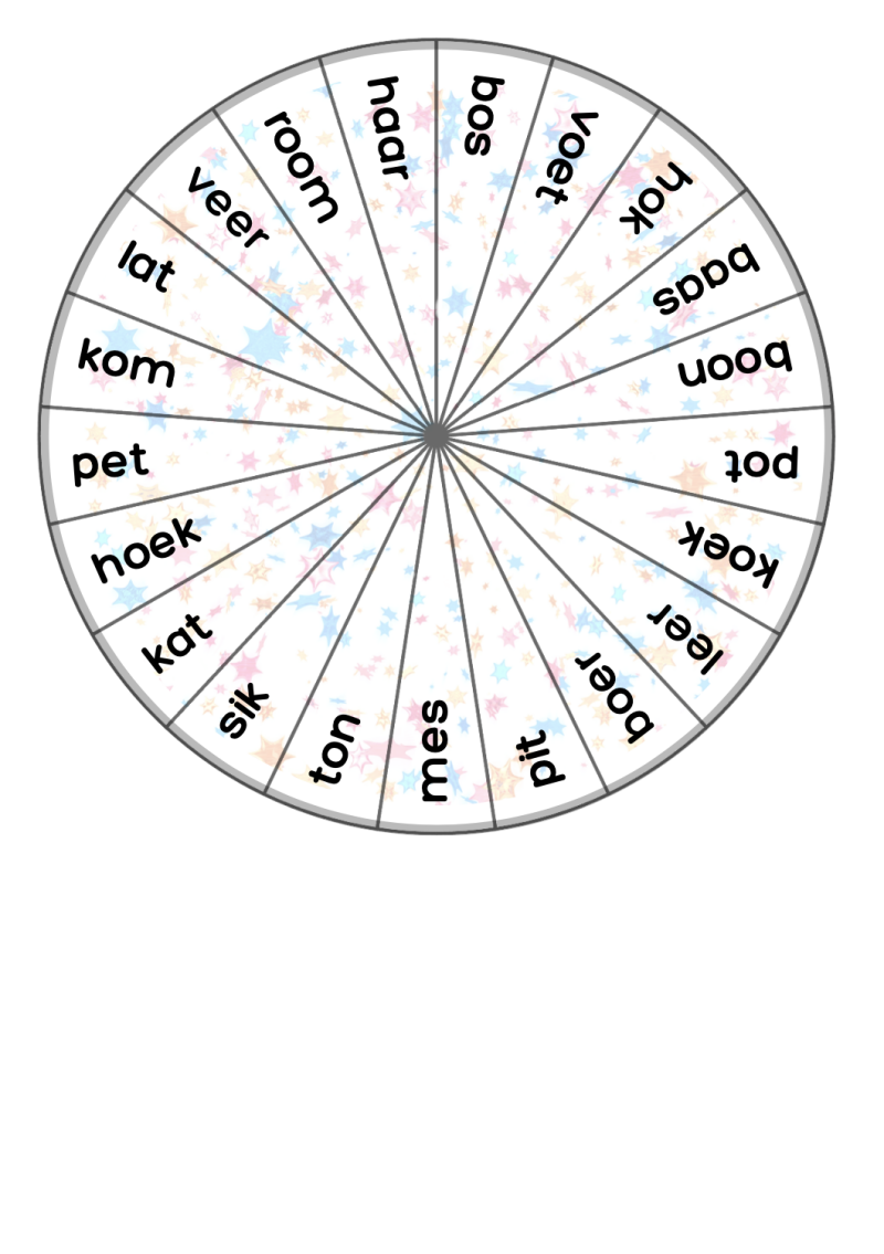 Deze bingo gebruik ik tijdens hoekenwerk. In het midden van de cirkel plaats ik een pijltje waaraan de kinderen kunnen draaien.