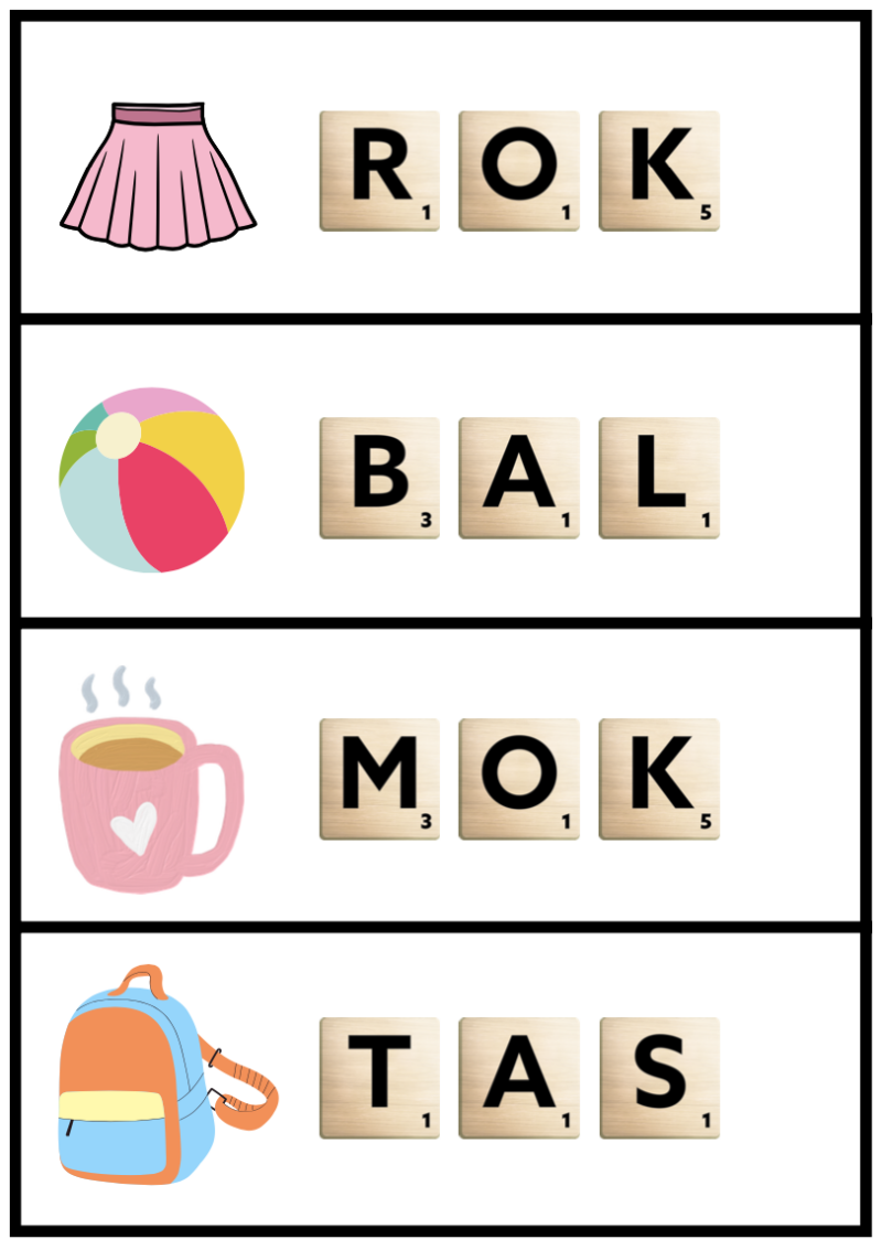 Met de scrabble letters van de action leggen de kinderen deze woorden na.